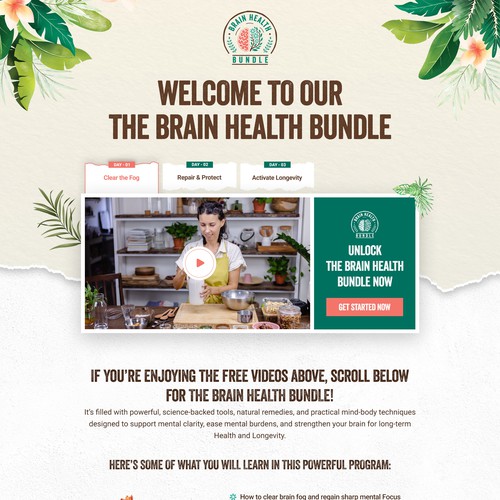 Create a page that features a 3-day video drip element in the hero along with a sales page below. The video player will